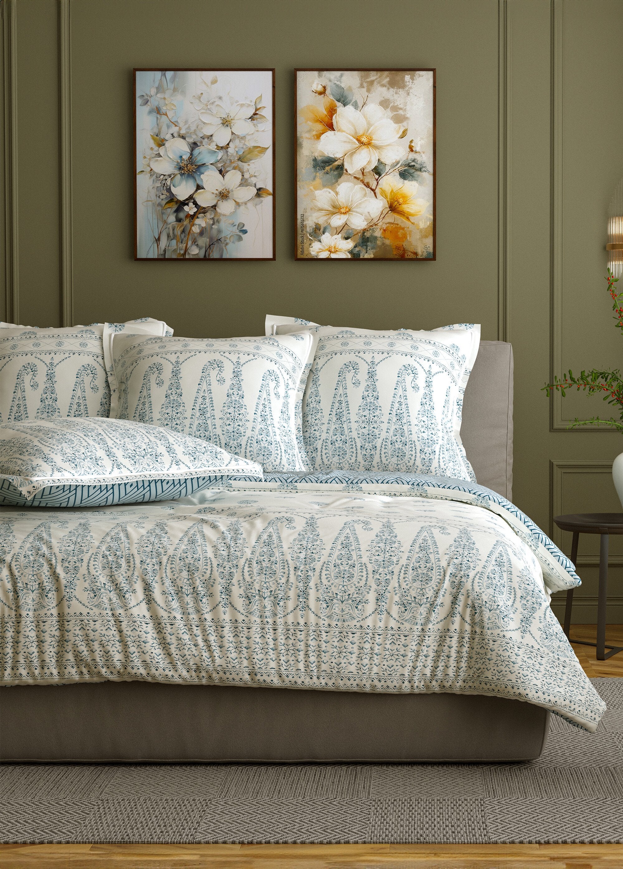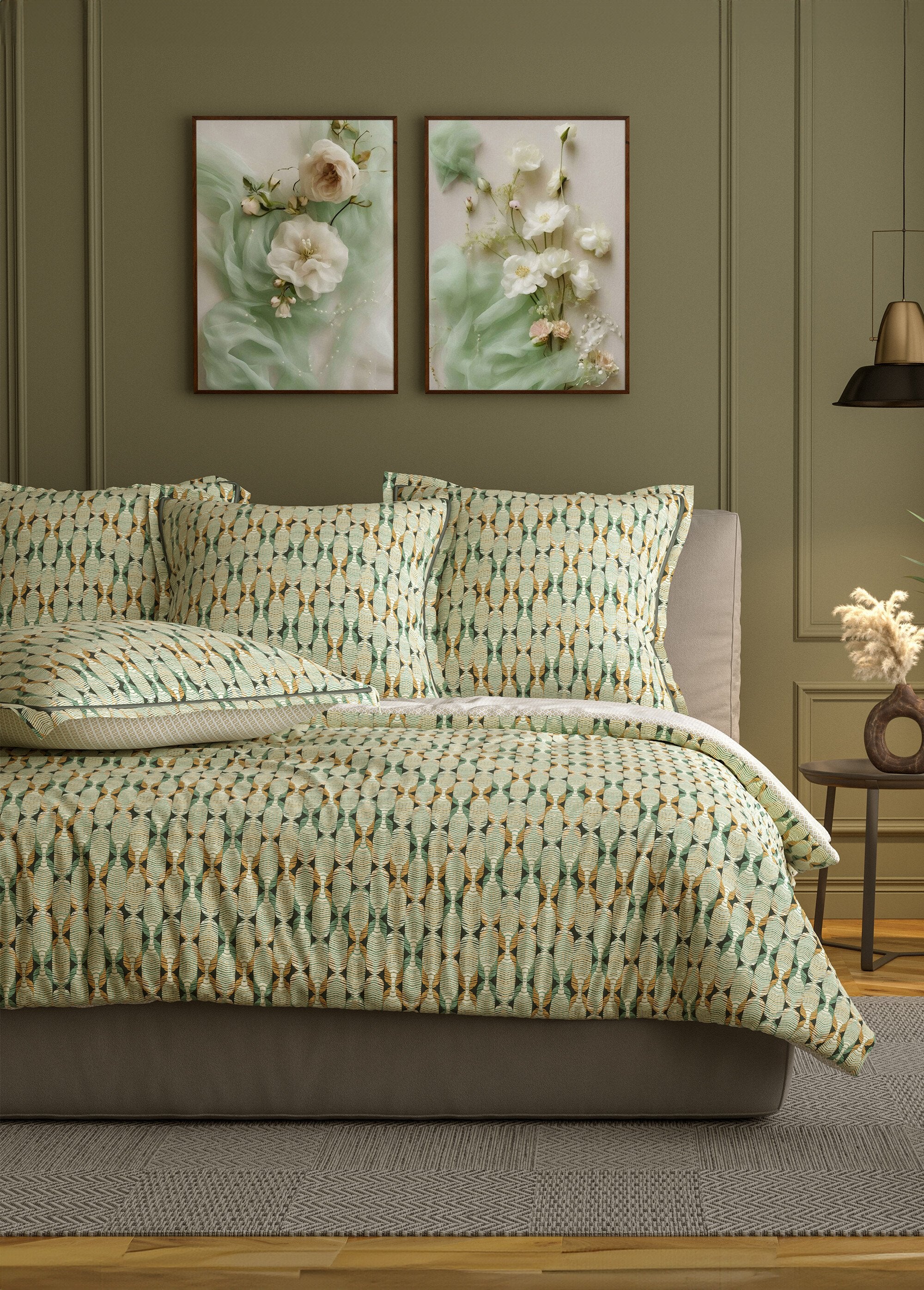 3-piece_bedding_set_with_duvet_cover,_ethnic_Green_print_FA1_slim 3-piece_bedding_set_with_duvet_cover,_ethnic_Green_print_DO1_slim