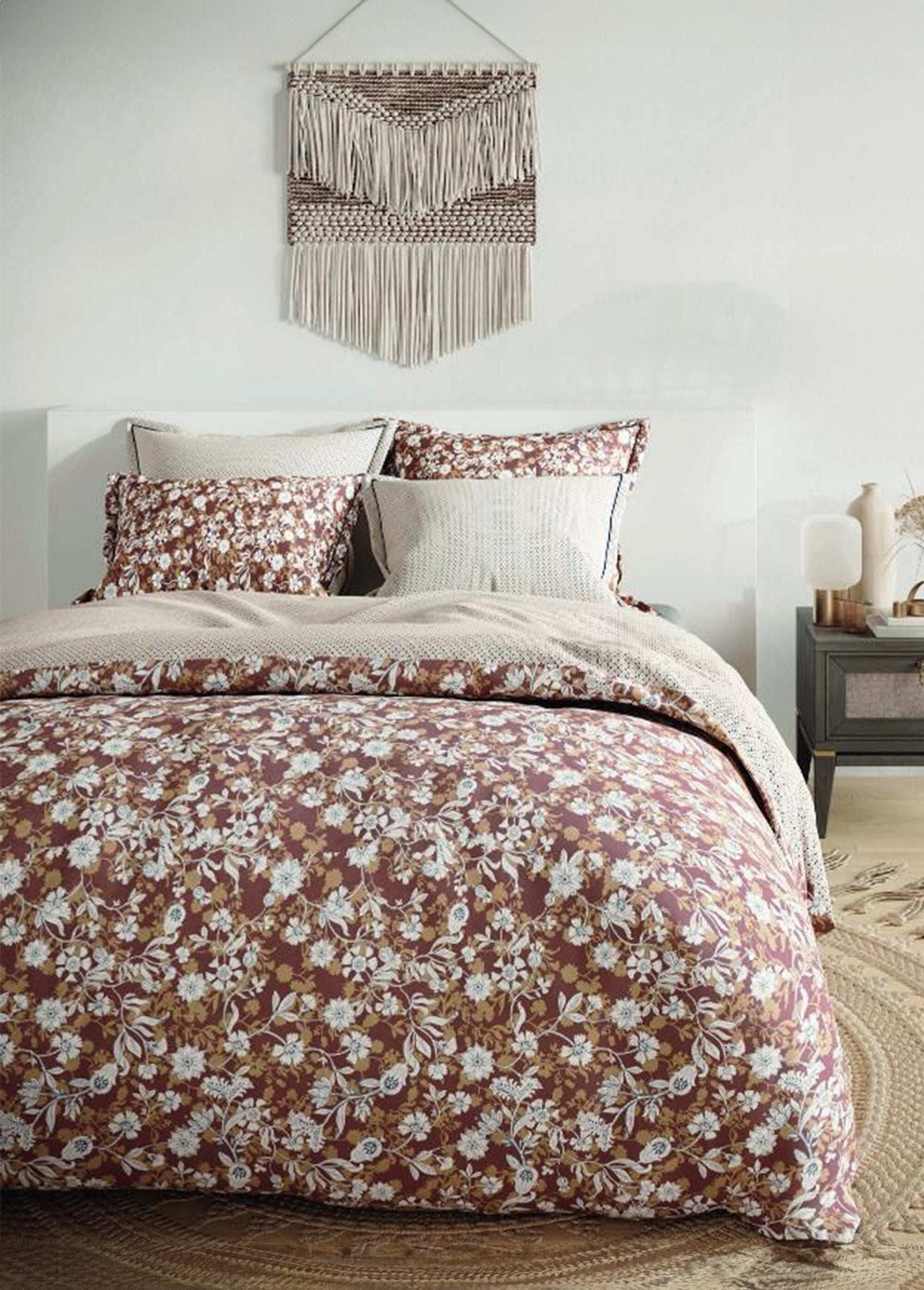 Bedding sets come in a variety of styles and patterns to enhance any bedroom. Whether you prefer solid colours or delicate patterns, each set can transform the feel of a room. Collections in cotton percale, cotton sateen or cotton gauze combine comfort and aesthetics. The fitted sheets, flat sheets and duvet covers available in these ranges ensure a quality night's sleep. For children's beds, sets with playful and colourful patterns are also available, creating a welcoming room for the little ones.
