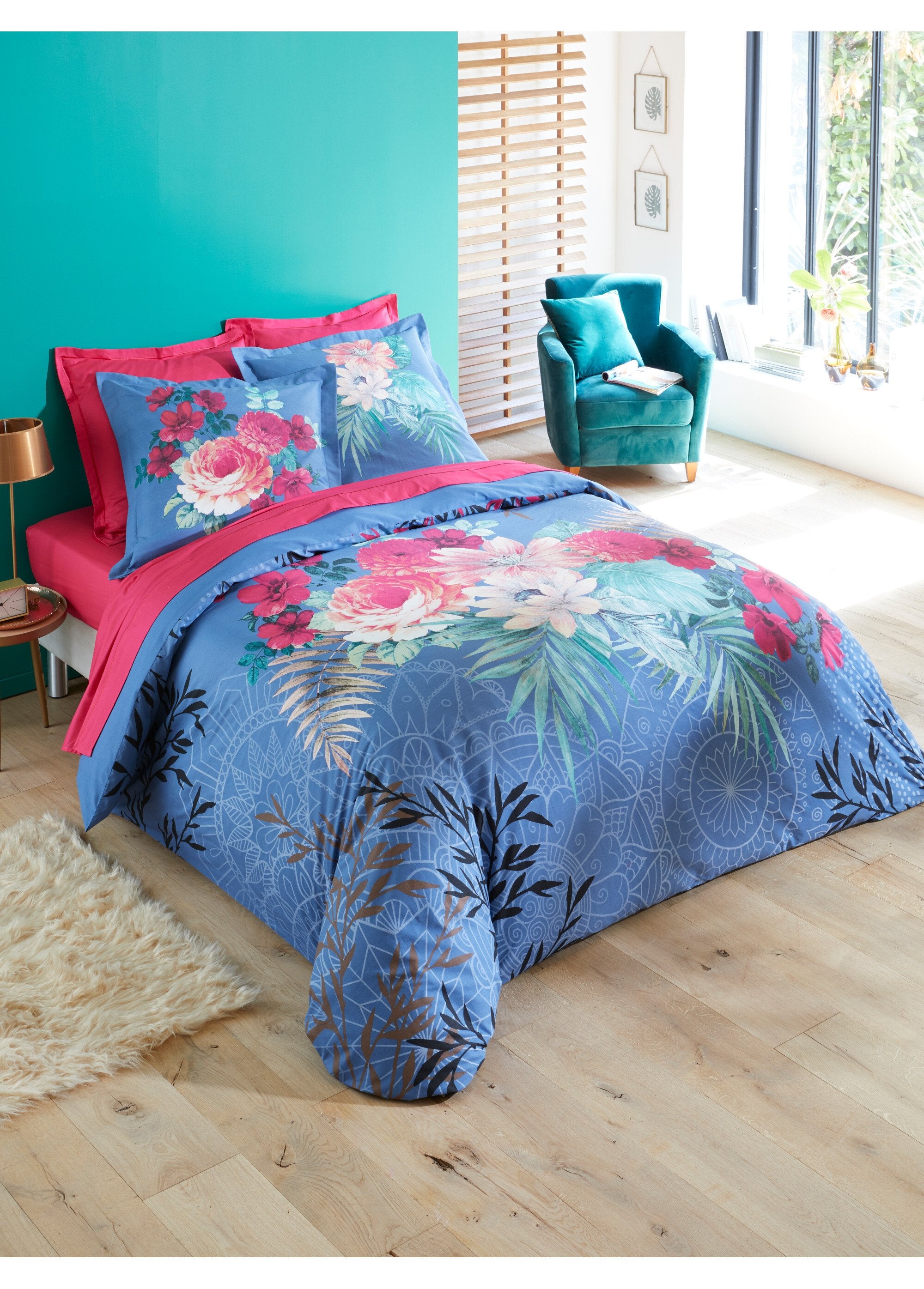 3-piece_percale_bedding_set_with_duvet_cover,_rosettes_Blue_print_FA1_slim 3-piece_percale_bedding_set_with_duvet_cover,_rosettes_Blue_print_DO1_slim