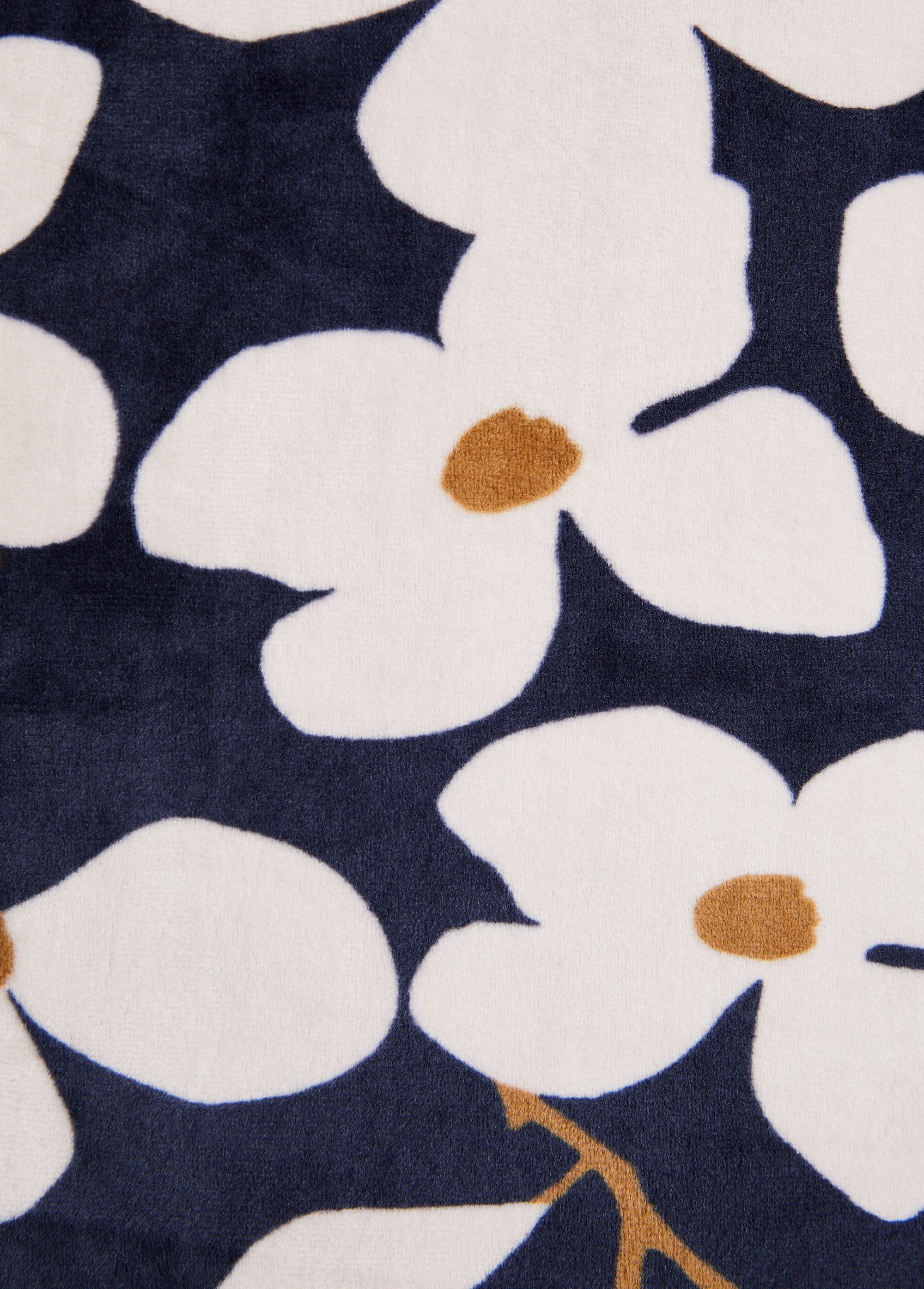 Appreciated for its comfort, the t-shirt nightgown has been updated with a superb floral pattern on a very soft velvet knit. Ribbed edges at the open round neckline and at the bottom of the long sleeves. Raglan armholes. Double stitching at the base.