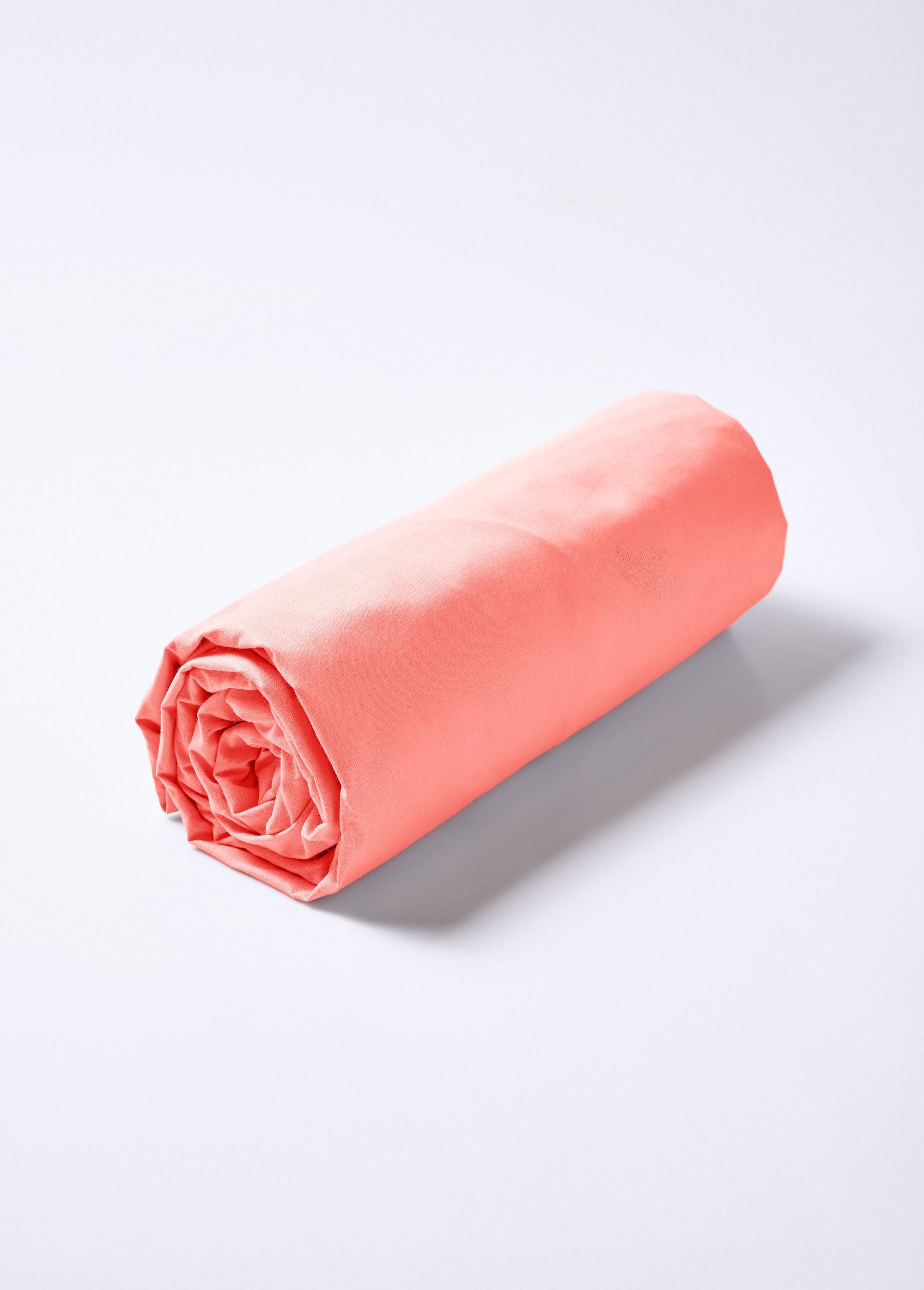 The fitted sheet in 100% quality cotton with a fine, tight weave (57 thread/cm²). Wide, well-fitting elasticated corners, 27 cm cups. Excellent color fastness. Washable at 60°C.