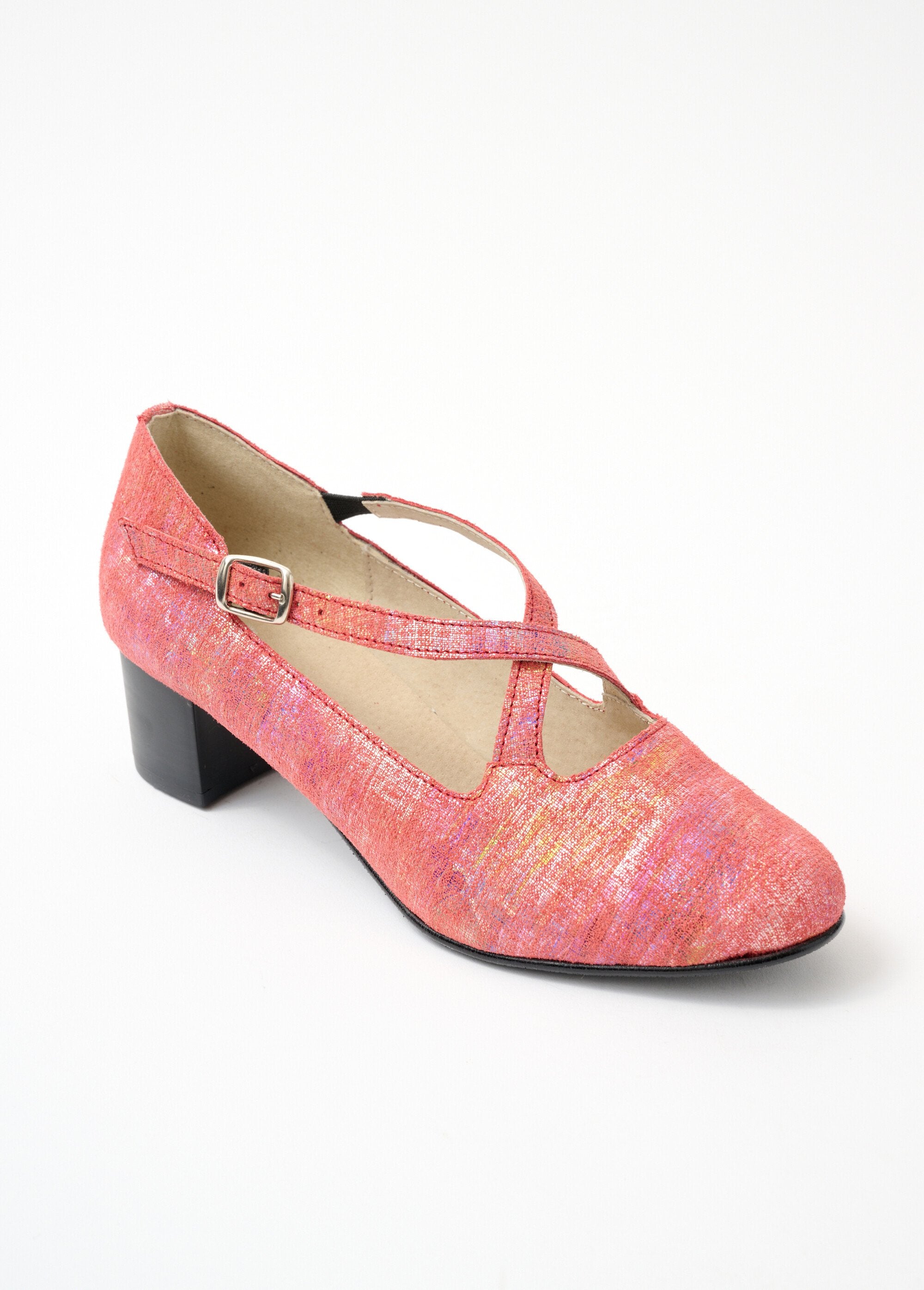Rediscover the pleasure of walking with a women's pump with sparkling chic and soft comfort. Crossed straps on the foot adjustable by buckle. 1 strap and buckle mounted on elastic.